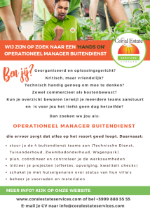 Als Tuinonderhoud Medewerker help je bij het onderhouden en verbeteren van de groene ruimtes op Coral Estate. Je werkt dagelijks aan de uitstraling en kwaliteit van het resort.