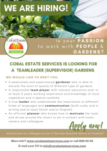 Solliciteer dan nu — we kunnen niet wachten je te leren kennen. info@coralestateservices.com.